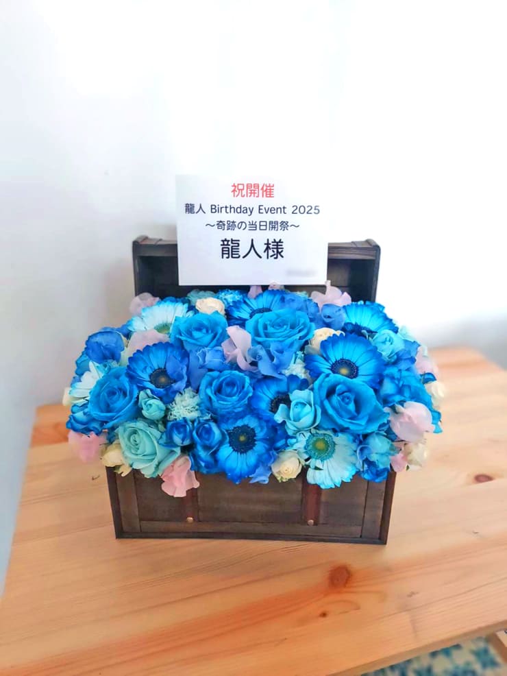 龍人様のBDイベント開催祝い花 トランクケースアレンジ @原宿ストロボカフェ