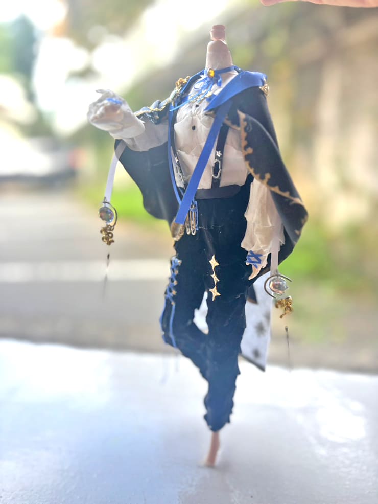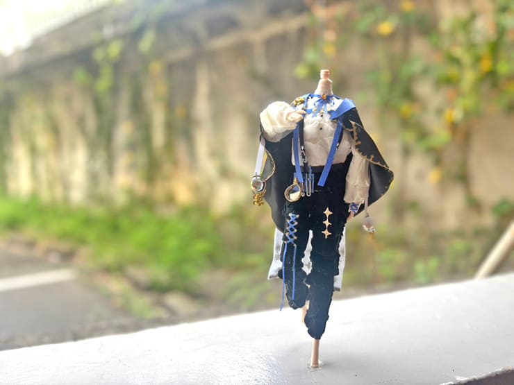 Comment | 黒のマント風鑑定士衣装再現。 マントのシルエット、パンツラインを忠実に。 細かい衣装部分、パーツ部分を丁寧に再現、手のポーズをつけて。 |