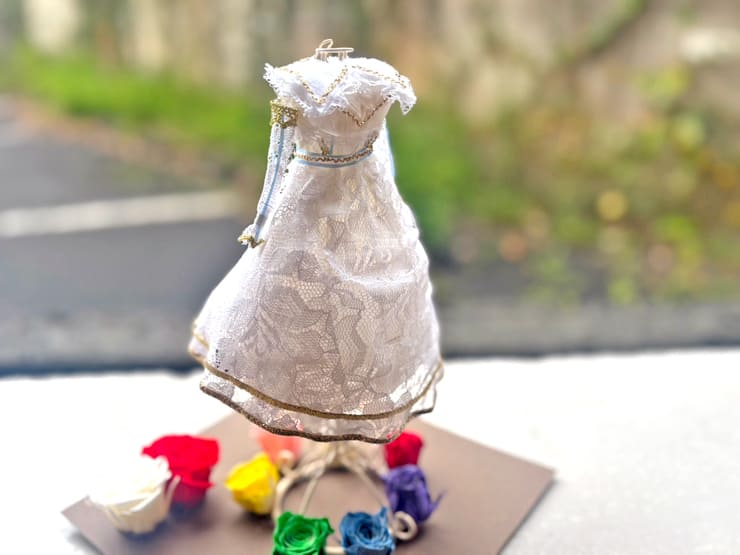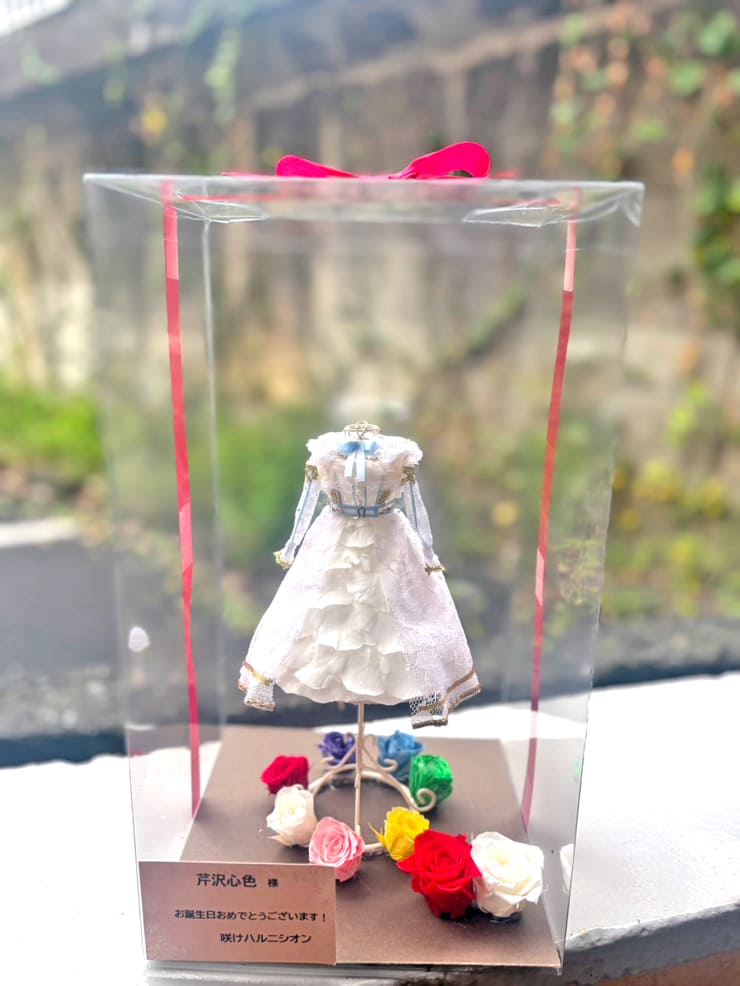 ハルニシオン 芹沢心色様の生誕祭祝い花 衣装再現プリザーブドフラワーミニトルソーアレンジ @渋谷音楽堂