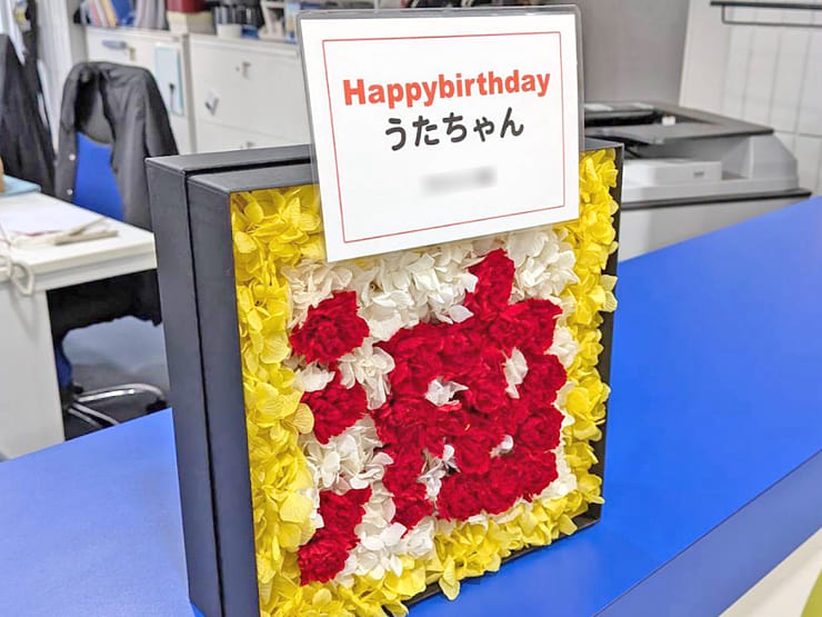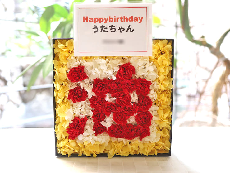 Palette Parade 葵うた様の生誕祭祝い花 「油」文字モチーフプリザーブドフラワーBOXアレンジ @白金高輪SELENE b2