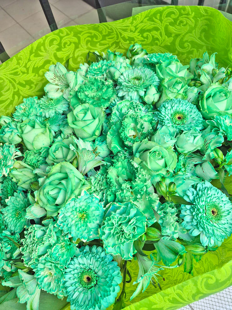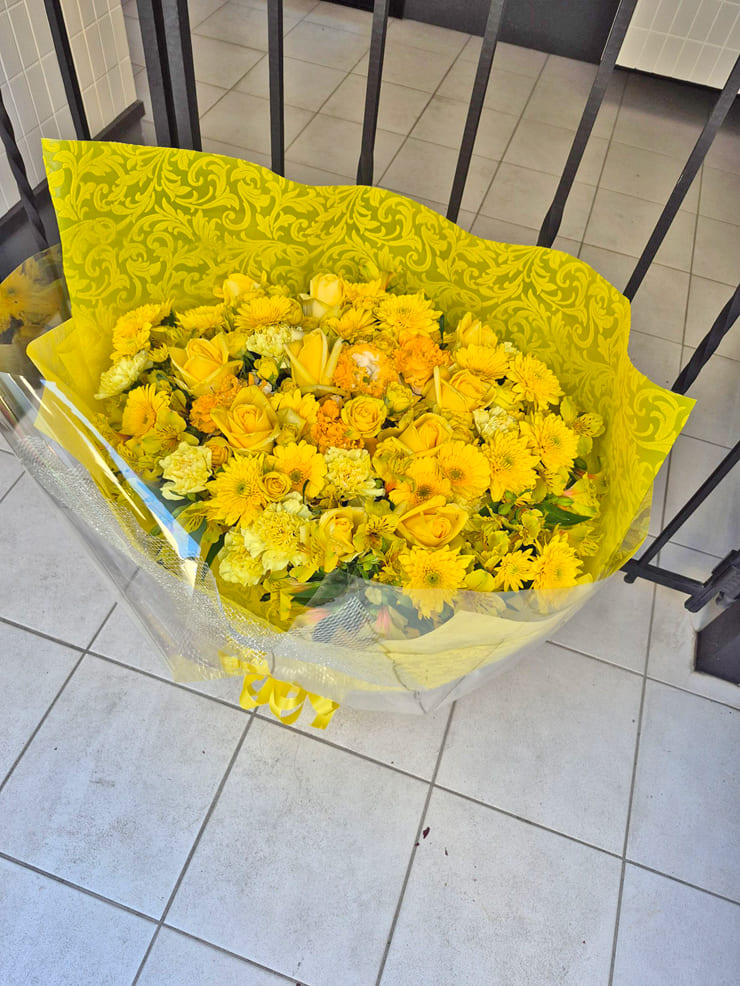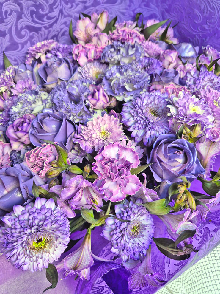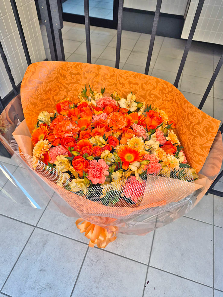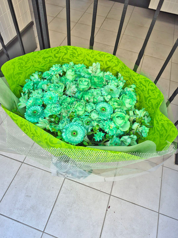 | Comment | メンバーカラーの8色の花束をお作りしました。 ラッピングにシルバーのメッシュをポイントで入れました。 |