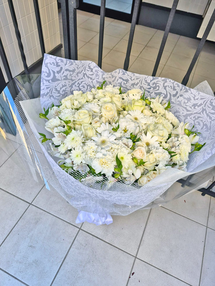 <白>バラ、スプレーバラ、トルコキキョウ、ガーべラ、カーネーション、スプレーマム、アルストロメリア、不織布、メッシュ、サテンリボン <赤・黄>バラ、スプレーバラ、ガーべラ、カーネーション、スプレーマム、アルストロメリア、染トルコキキョウ、不織布、メッシュ、サテンリボン <オレンジ>バラ、スプレーマム、ガーベラ、アルストロメリア、カーネーション、染スプレーマム、染トルコキキョウ、不織布、メッシュ、サテンリボン 〈青・紫・水色・緑〉染パラ、染スプレーバラ、染トルコキキョウ、染ガーべラ、 染アルストロメリア、染カーネーション、染スプレーマム、不織布、メッシュ、サテンリボン |