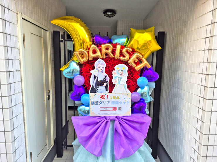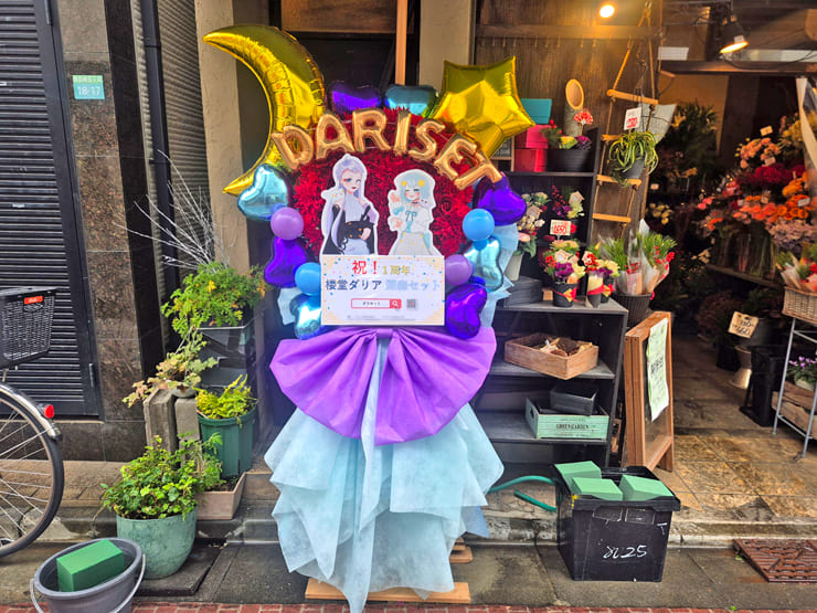【 #ヲモヒヲカタチニプラス 】楼堂ダリア様 深森セット様のダリセット活動一周年祝いフラスタ【花屋店頭展示】