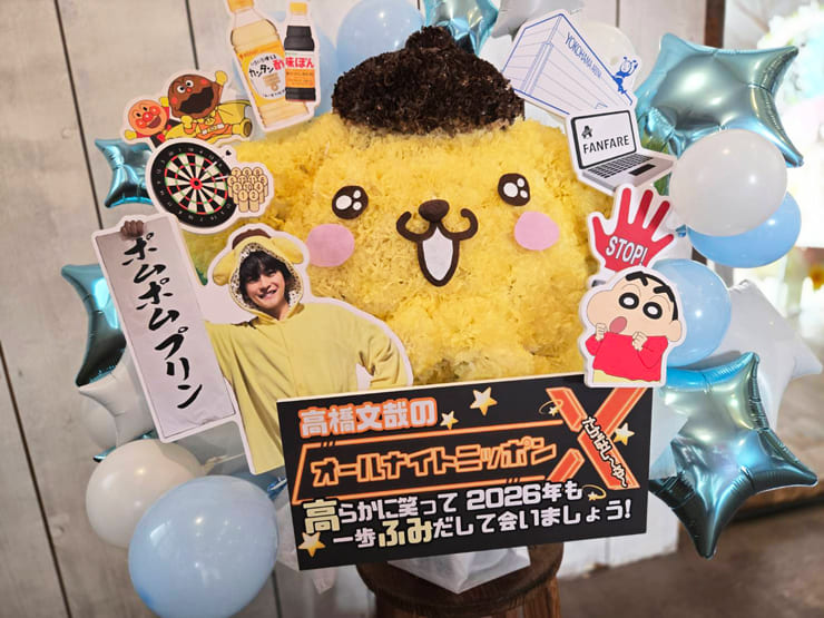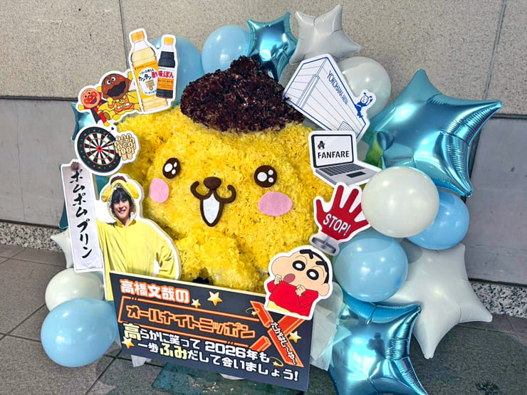 高橋文哉様のオールナイトニッポンX年内最終放送祝い花 ポムポムプリンモチーフ @ニッポン放送
