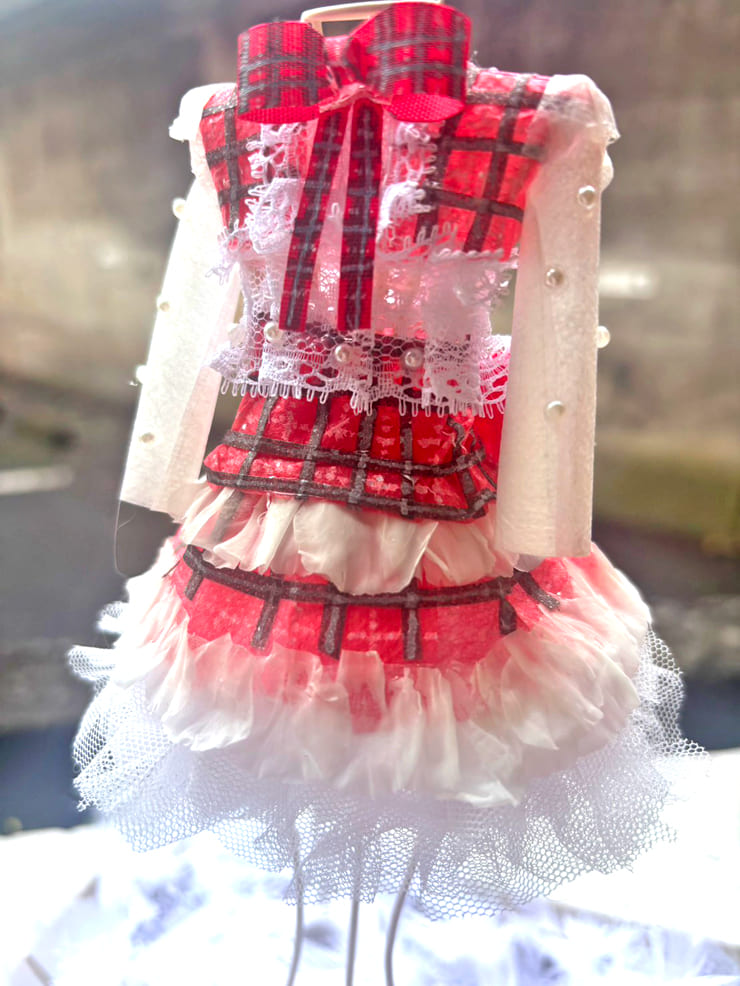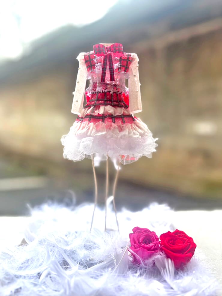 ミニ丈、パニエのボリューム、袖のパールこだわりのポイントをしっかり再現。