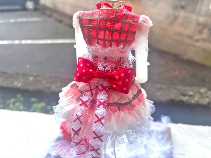 バック部分も忠実に。チェック柄は不織布と手書きで細かく。
