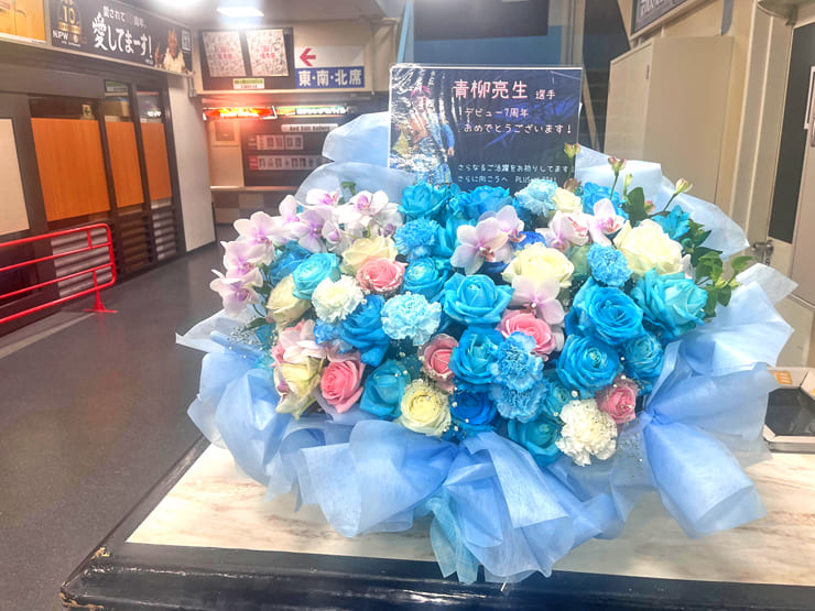 本日1月2日がデビュー記念日の青柳亮生選手にお祝いのお花が💐
