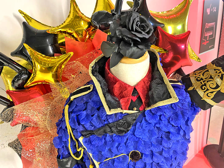 | Comment | 衣装を再現したトルソースタンド花。 キービジュアルのポーズを表現するためにコートの裾がひるがえっているように細工。 また剣付きのマイクを制作して手に持たせ仕上げました。 |