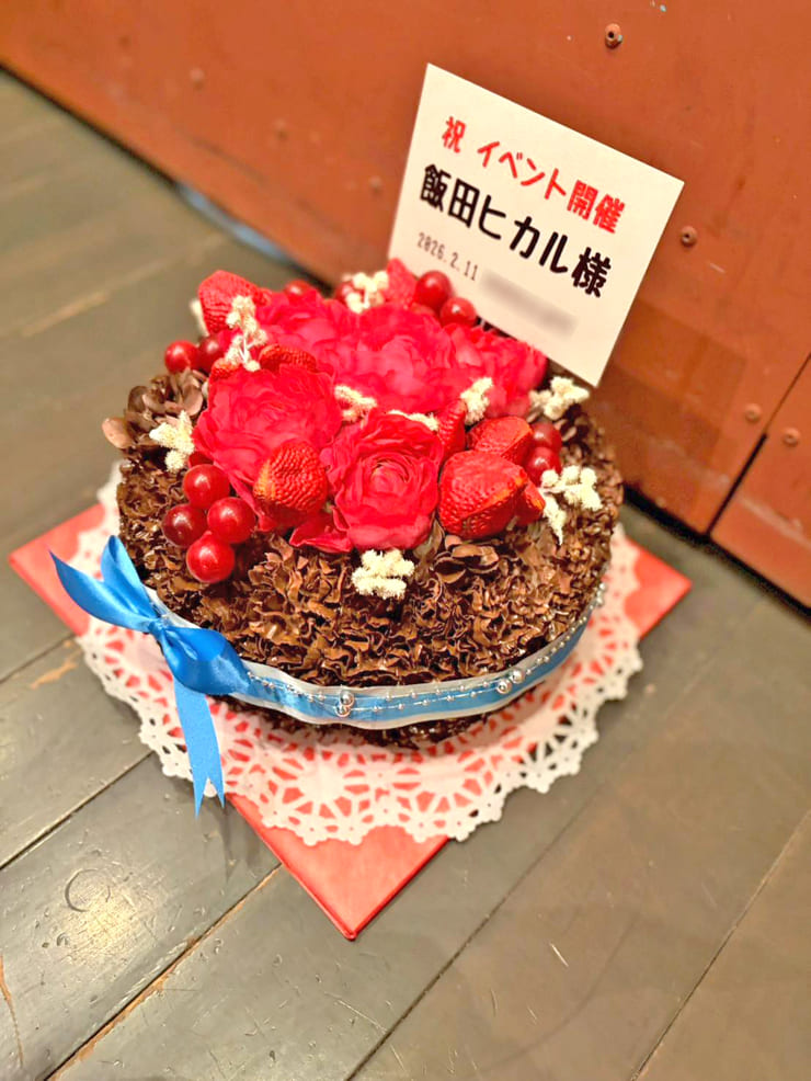 飯田ヒカル様の #ヒカROOM バレンタインイベント出演祝い花 チョコレートケーキアレンジ @横浜赤レンガ倉庫