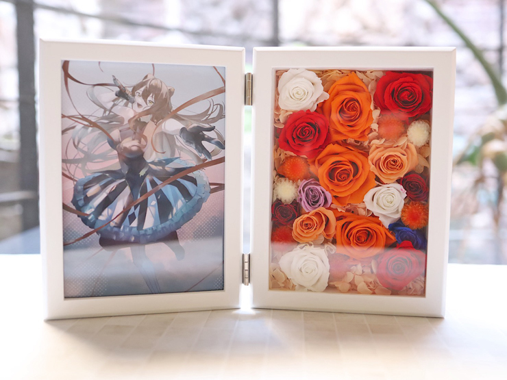 伊織ねめあ様の #ぶいかふぇ 出演祝い花 プリザーブドフラワーフォトフレームアレンジ @LIVE SPACE Q