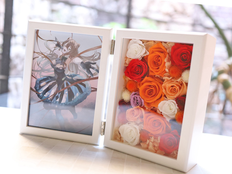 | Comment | プリザーブドフラワーのフォトフレームアレンジ。 イラストはお客様にご用意いただきました。 イメージカラーのオレンジをメインに、差し色を入れてお作りしました。 |