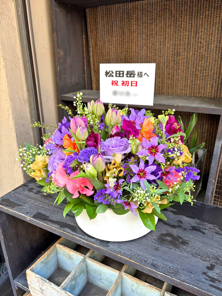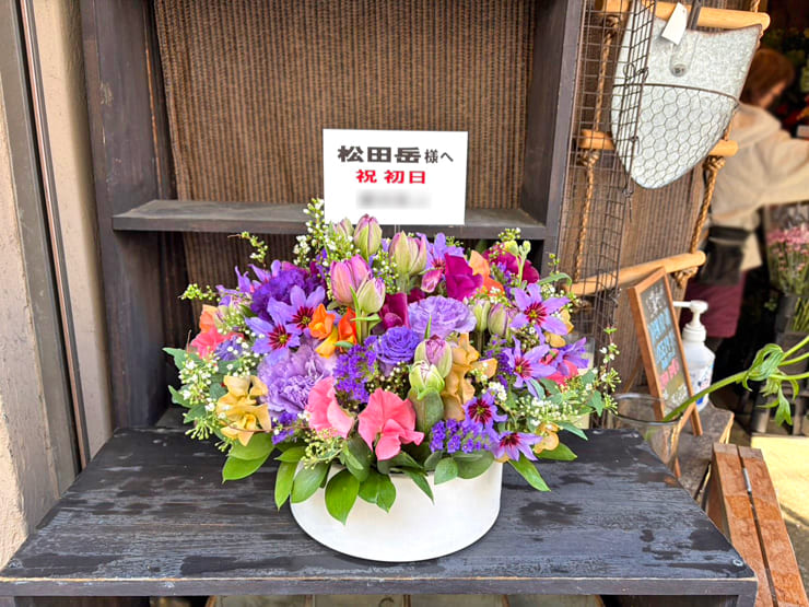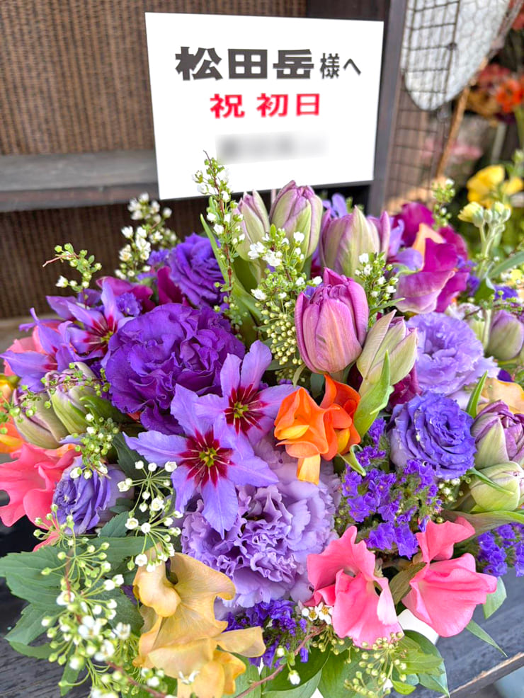 【 #ヲモヒヲカタチニプラス 】松田岳様の舞台出演祝い花 @あうるすぽっと・AiiA 2.5 Theater Kobe【花屋店頭展示】