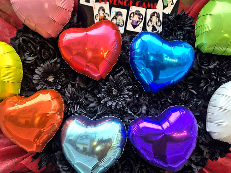 Comment 黒い花の中にメンバーカラーのバルーン。