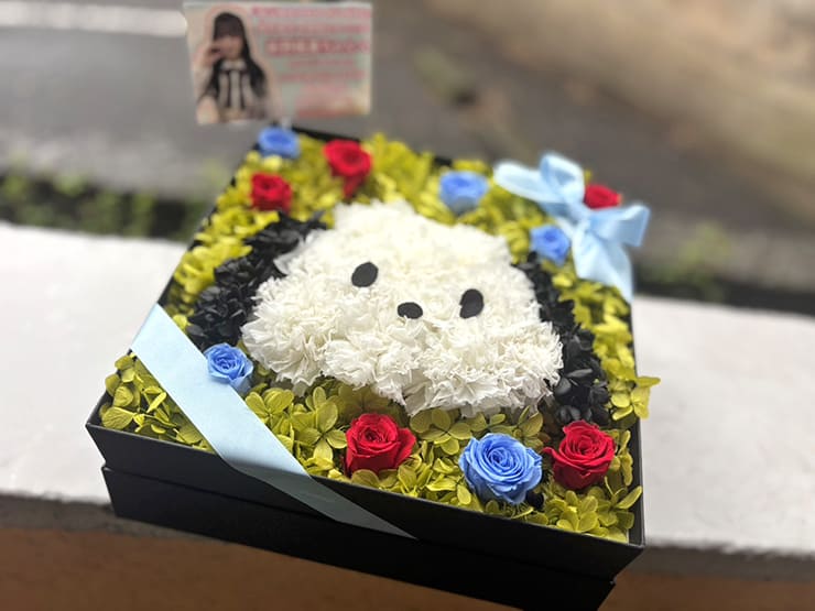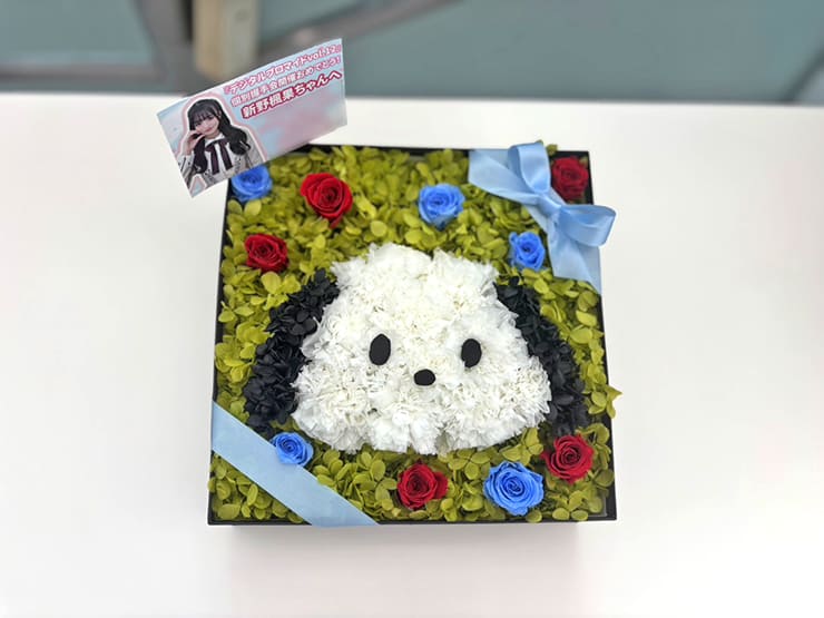 Rain Tree 新野楓果様の握手会開催祝い花 ポチャッコモチーフプリザーブドフラワーBOXアレンジ @TFTホール