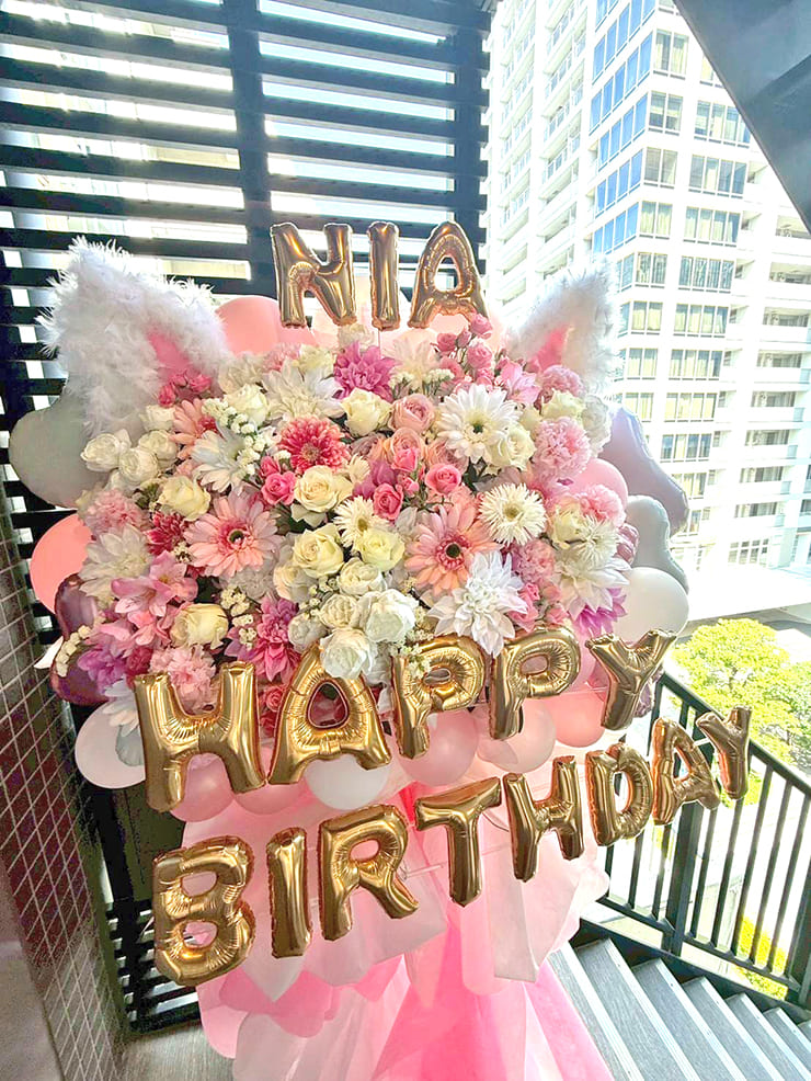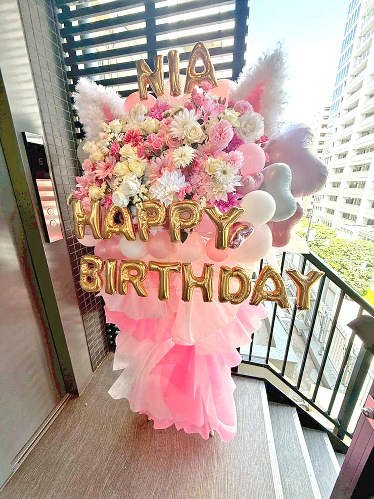 | Comment | 生花、造花ミックスでおつくりしました。 猫耳を制作、バルーンでデコレーション。 ボリュームのあるかわいいスタンド花になりました。 |