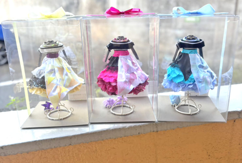 トライアムトーン様の #Rst_10thAnniv ライブ出演祝い花 衣装再現ミニトルソーアレンジ @川口総合文化センターリリア・フカガワみらいホール