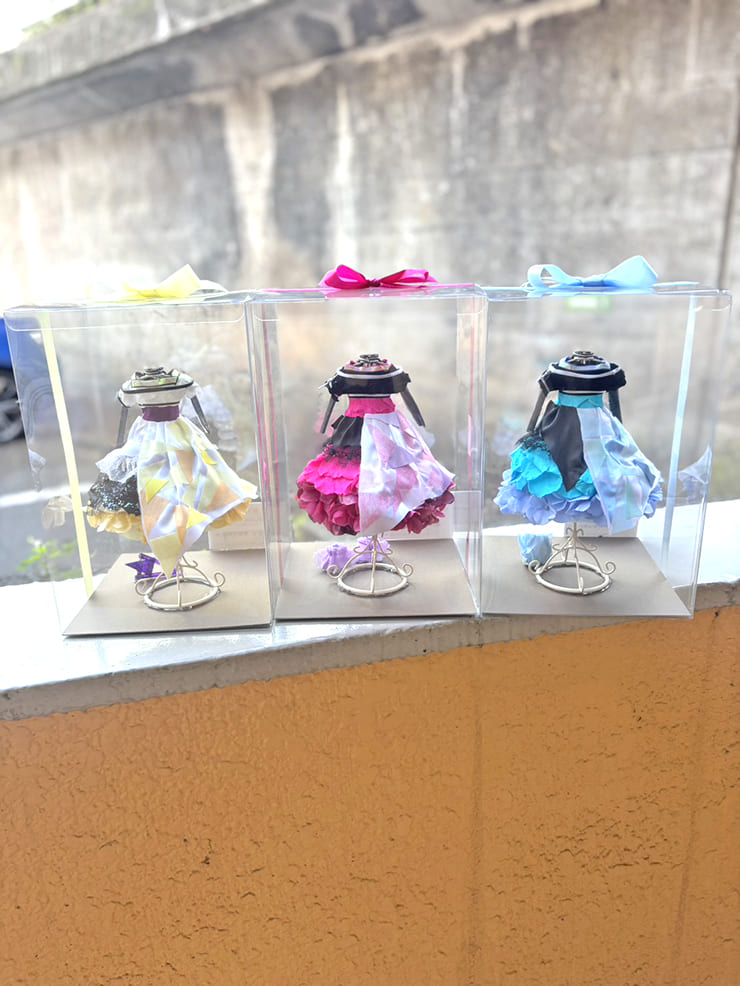 トライアムトーン 岬珊瑚役 田中あいみ様の #Rst_10thAnniv ライブ出演祝い花 衣装再現ミニトルソーアレンジ @川口総合文化センターリリア・フカガワみらいホール